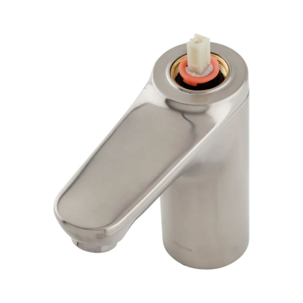 - Single lever handle with temperature stop
