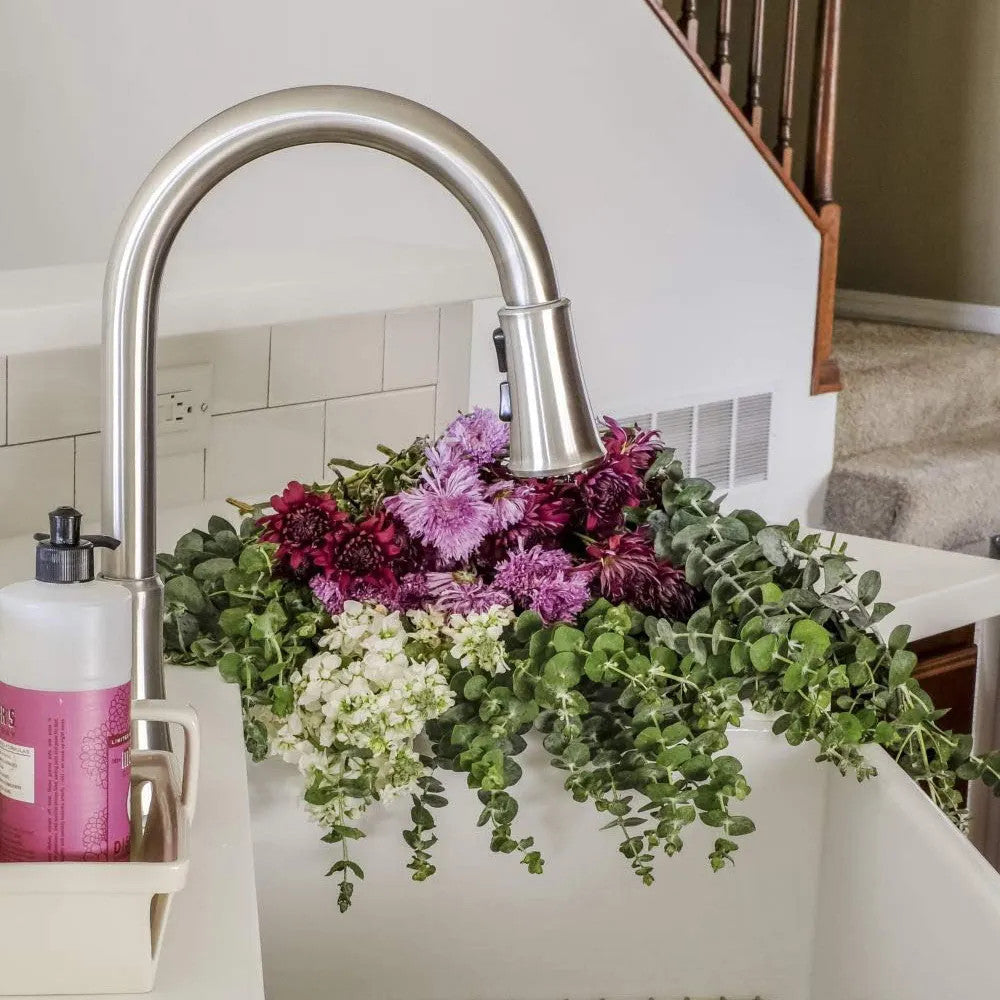 The Pfister G529-PF2S stainless kitchen faucet delivers style with performance. Its pull-down spray head offers stream, spray, and pause functions.