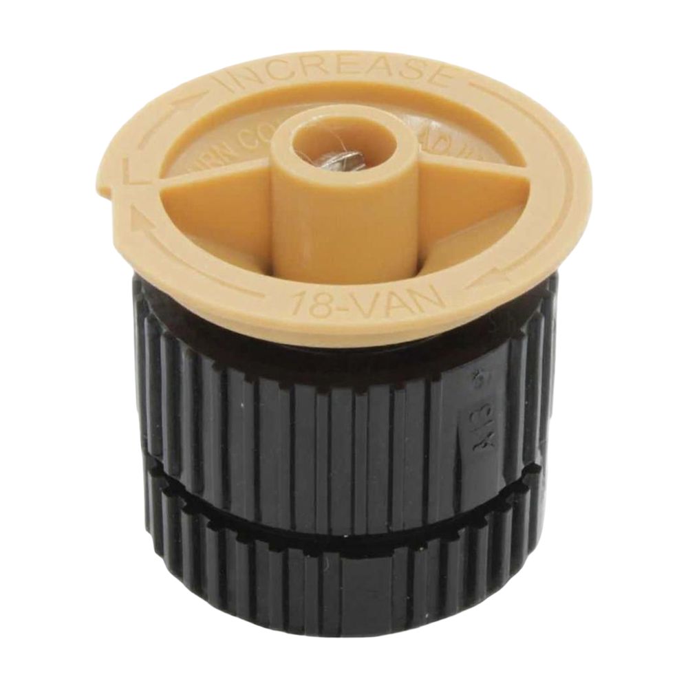 The Rain Bird 18VAN spray nozzle delivers a 0°–360° arc with an 18 ft radius. Perfect for odd-shaped or narrow areas, it adjusts easily by turning the collar.
