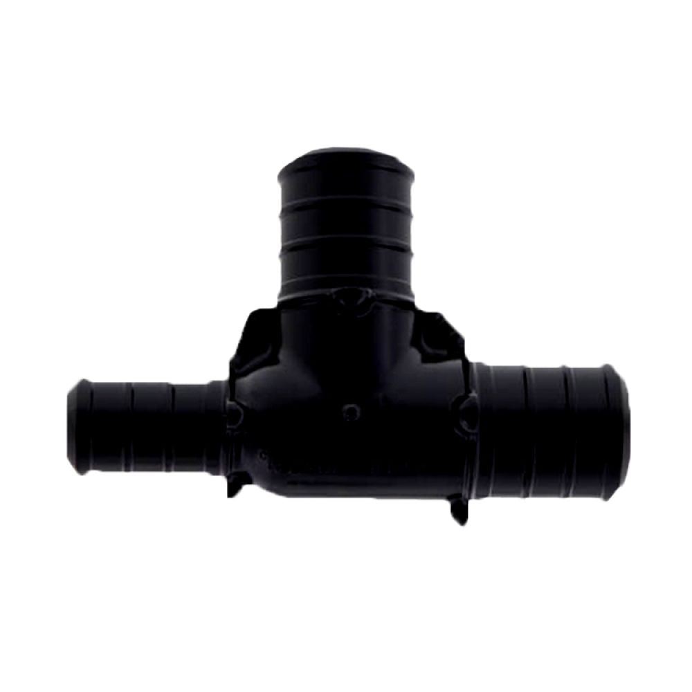 This PEX Reducing Tee connects 3/4" x 1/2" x 3/4" tubing in a secure T configuration. Crimp ends deliver reliable leak-free connections.