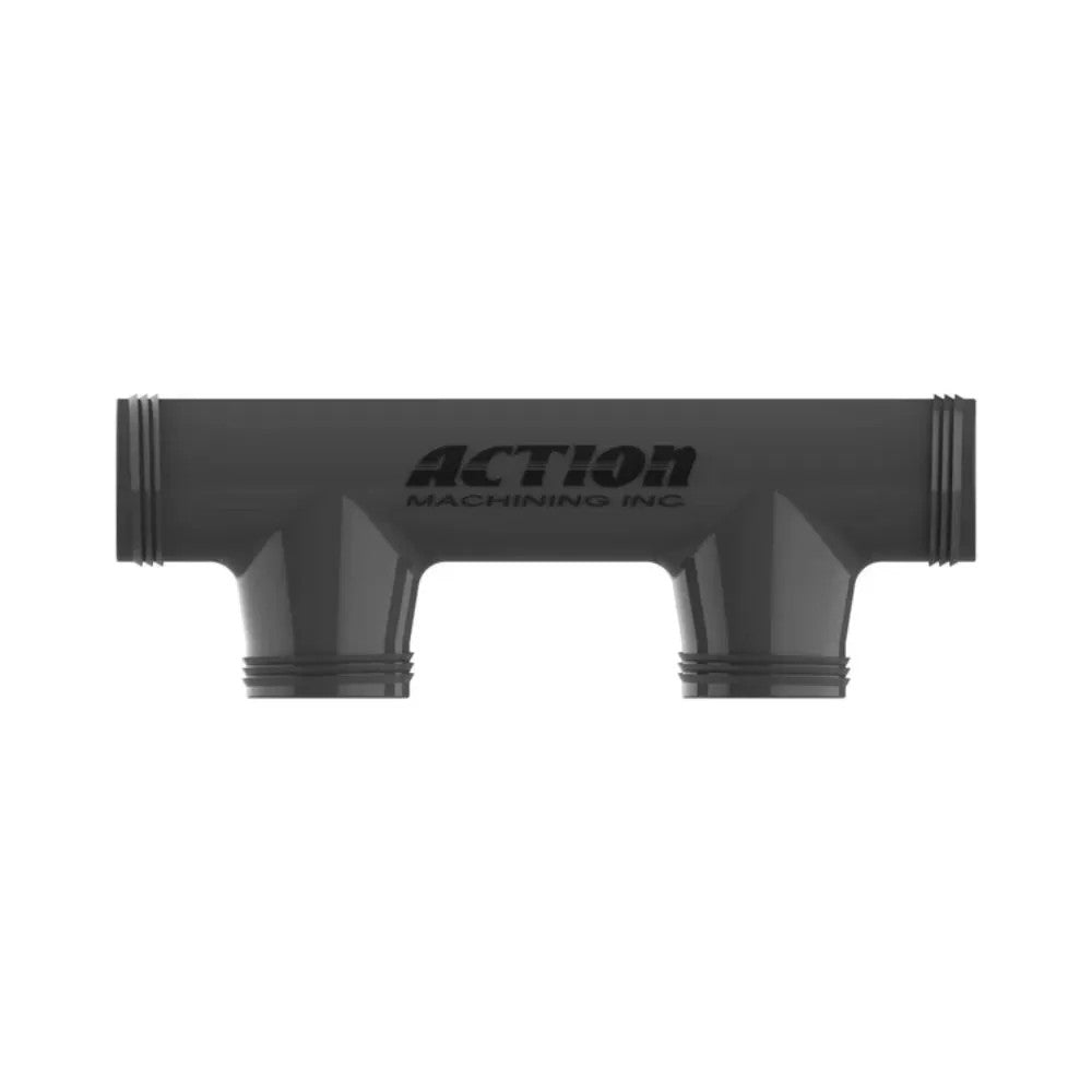 The Action Machining 18002 double manifold controls two irrigation valves with one unit. Made of Schedule 80 PVC, it provides durability and reliability.