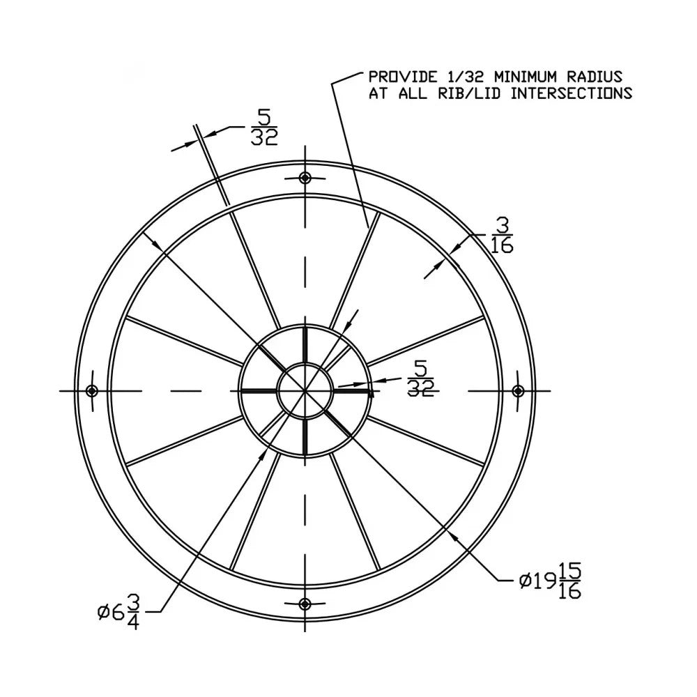 The Norwesco 62408 domed septic tank lid measures 20" and includes a gasket for a secure, watertight seal. Its domed construction sheds rainwater to protect the opening.