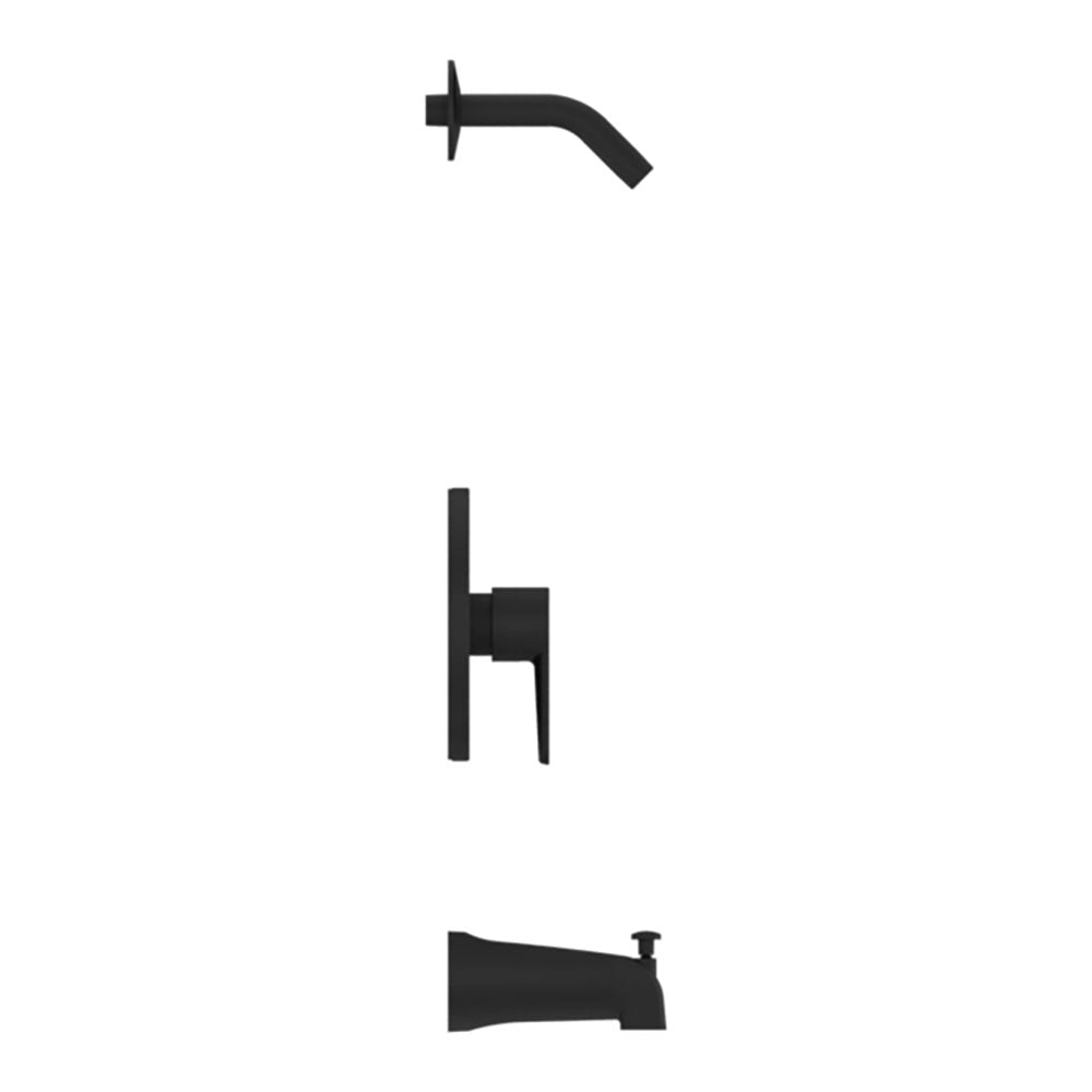 The Pfister R89-070B Pfirst Modern Tub/Shower Trim in matte black adds sleek style to bathrooms. Designed for durability, it installs easily onto Pfister valves and provides reliable control.